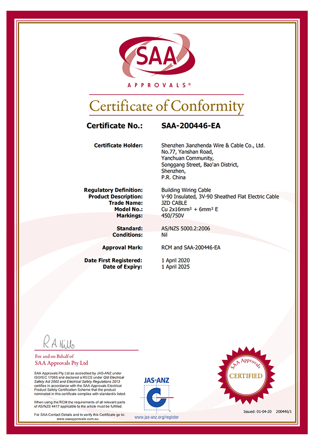 深圳建圳達電線電纜有限公司,成立于2000年,是一家電線電纜制造商,我們通過了世界各地不同市場的多數認證,如:CCC、RoHS、CB、SAA、TUV、VDE、PSE、BPS、UL、CSA。我們根據定制產品不斷更新新的認證。經過數十年的發展,我們與來自世界各地的客戶建立了長期的合作關系。我們曾經是菲律賓機場,,柬埔寨的電力站,美國的醫院,工廠,埃塞俄比亞的水電站項目。我們是一家值得信賴的電線供應商。